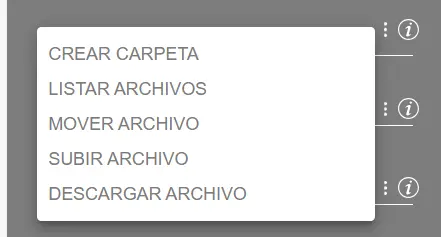 fileIdde la carpeta de destino o la ubicación final de la operación. - Información Requerida (Ejemplos según la Función):