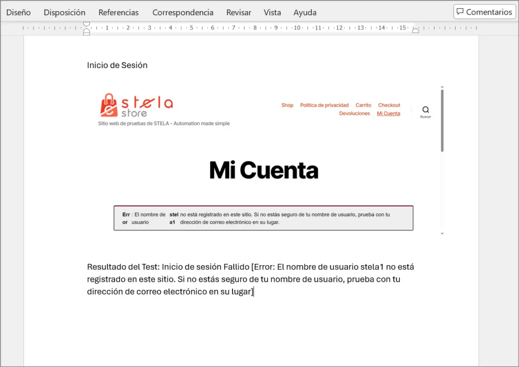 Imagine que necesita generar un reporte detallado de pruebas para el módulo de Inicio de Sesión de un ecommerce . Utilizaremos el comando DocImage para capturar y organizar automáticamente las evidencias de los siguientes escenarios: