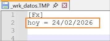 Guardar la fecha actual en la variable “hoy”, para ser utilizada en otro proceso.