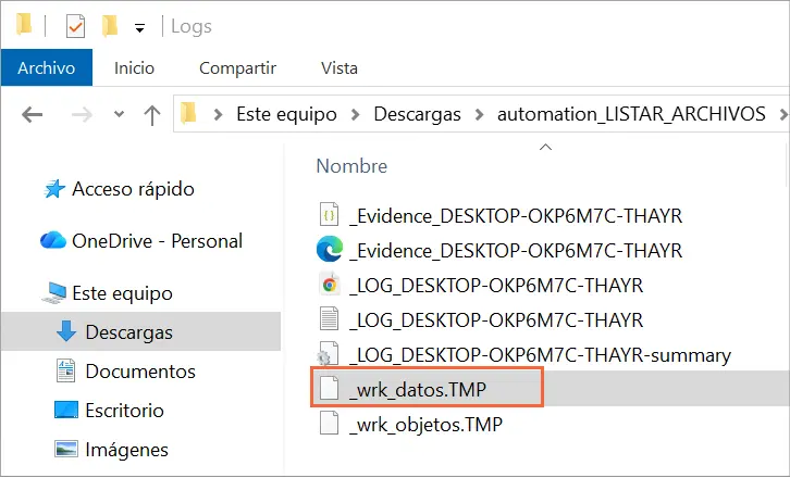 • Abrir archivo _wrk_datos.TMP de la carpeta Evidencias